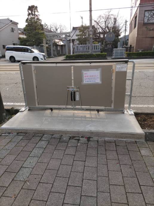 富山市中心部の南富山へつなぐ電車通りの両側に折りたたみ式が7台付けられました。