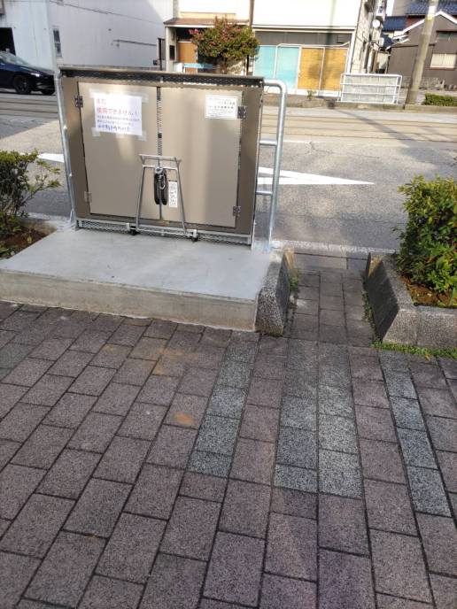 富山県滑川市駅前に折りたたみ式ゴミステーション「ワンタッチクン」を3台つけました